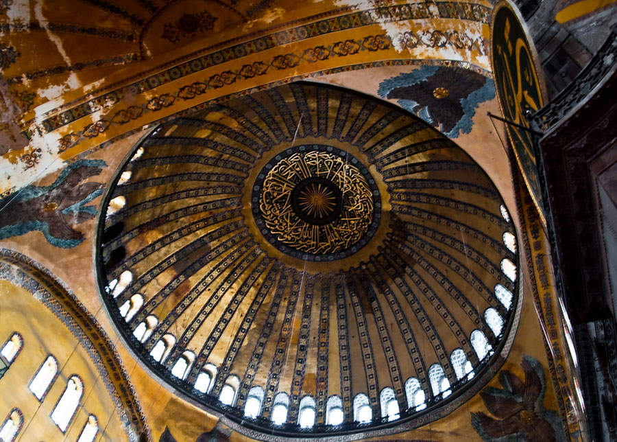 Today's Hagia Sophia is the third building built at the same place. The first one was a basilica with a wooden roof and was built in 390 AD. This original church Megale Ecclesia (Great Church) was burned down in a rumpus in 404. Theodosius replaced it with a massive basilica which was burned down in the Nika Revolt against Justinian in 532. Justinian began rebuilding the Hagia Sophia in the same year. The architects were two Anatolian geniuses, Anthemius of Tralles, an engineer and a mathematician and Isidorus of Miletus, an architect. They started collecting materials from all over the empire. In the construction ten thousand workers worked under the supervision of one hundred master builders. it was used as a mosque for 482 years. Under the order of Atatürk and the decision of the Council of Ministers, Hagia Sophia was converted into a museum in 1935.