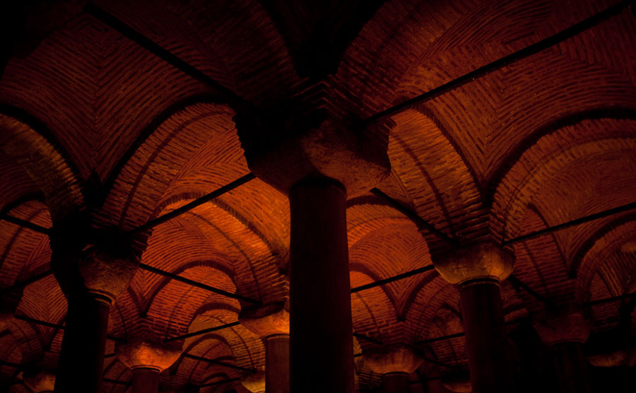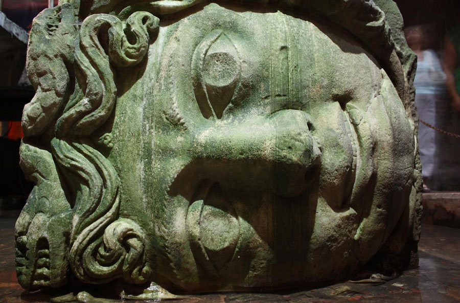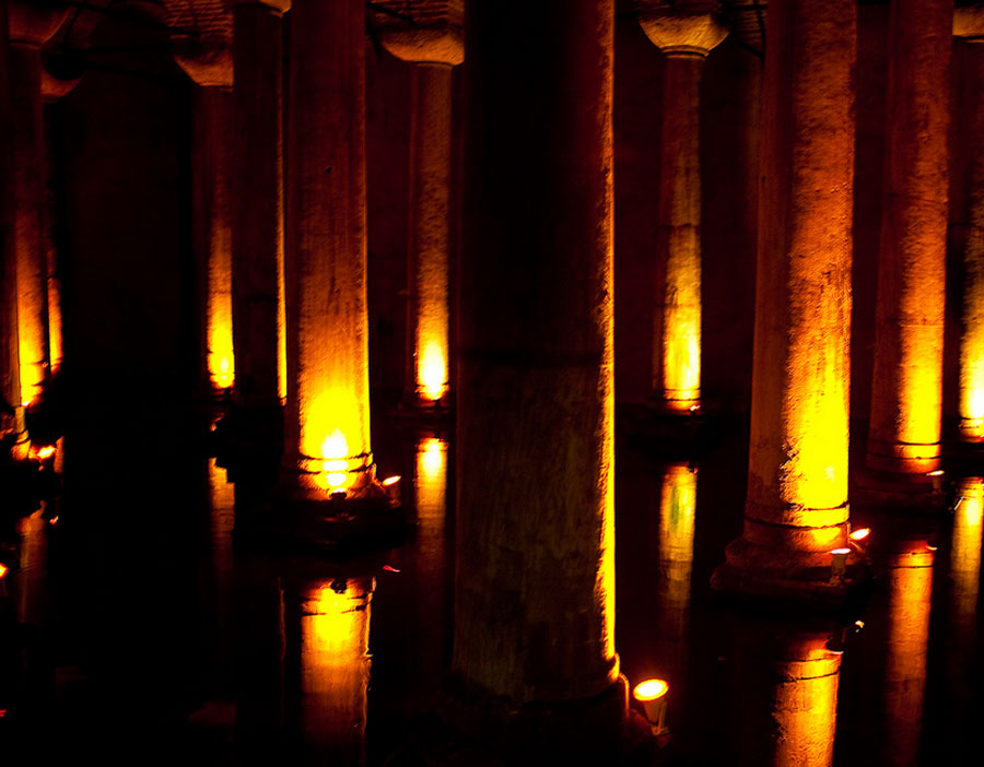 Between 1985-1988, the Municipality of Istanbul cleaned and restored it thoroughly and built a wooden walkway between the columns. In addition to that there are special effects presented by a light and sound show. By looking at the water level marks on the plaster walls which reach the height of the capitals, it is possible to understand that the cistern was very full in times gone by.Two Medusa heads were used to form bases for two columns in a far corner of the cistern. The position in which they were placed suggests that the people who put them there were Christians and did not want to revere a god of a pagan period. The water inside the underground cistern is collected rain water. The carp in the water are decorative and an incidental protection against pollution. Some people even think that the Byzantines originally also raised fish in the cistern.
